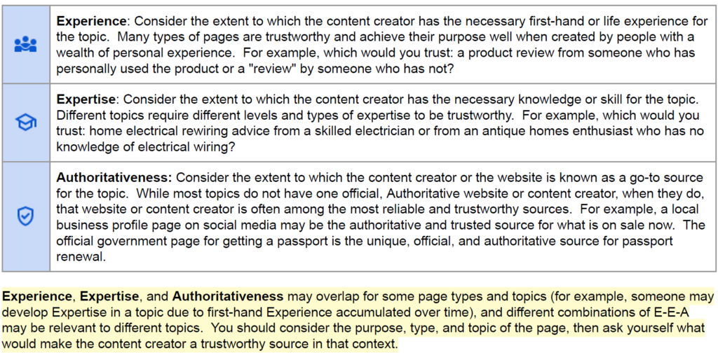 Abbildung 3: Erfahrung, Expertise und Autorität, nicht immer klar abgrenzbar. (Quelle: Google Search Quality Rater Guidelines)