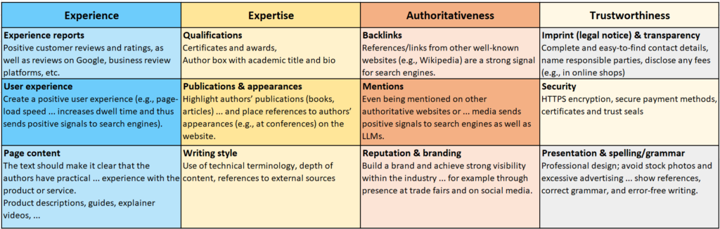 Abbildung 8: E-E-A-T-Tabelle (Quelle: eigene Darstellung)