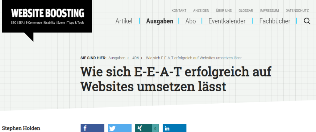 Für die Marketing-Fachzeitschrift Website Boosting habe ich einen Artikel zum Thema Suchmaschinenoptimierung für Webseiten mit sensiblen Themenbereichen wie Medizin oder Recht geschrieben. Gerne erkläre ich Ihren Mitarbeitenden, worauf es ankommt, um im Internet gefunden zu werden.